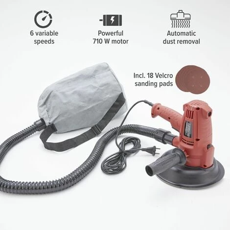 [POTENTE] Questa levigatrice per cartongesso è dotata di un motore ad alte prestazioni da 710W per levigare in modo efficiente le pareti. Con sei impostazioni di velocità variabili da 1500~3000giri/min.