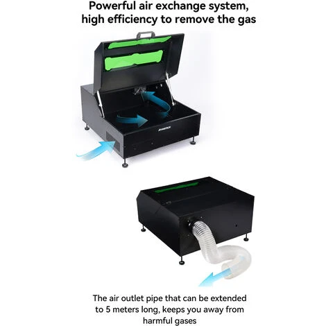 3. Il guscio della custodia protettiva ATOMSTACK B1 è dotato di una presa d’aria e di una ventola di ventilazione. Un tubo di sfiato è collegato all’esterno. L’altra estremità del tubo di sfiato è collegata a un sistema di filtri, in grado di estrarre e purificare efficacemente il fumo prodotto durante il processo di combustione.