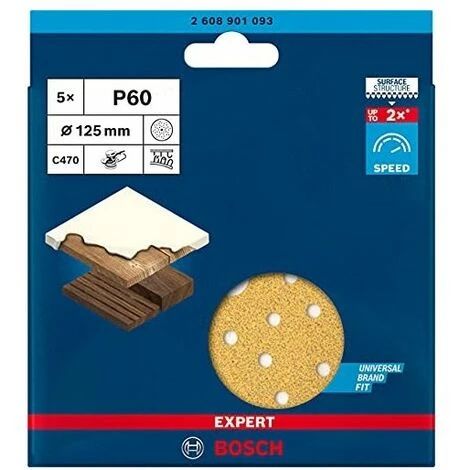 Bosch Expert C470 Carta Abrasiva Vernice E Legno Duro Per Levigatrici Rotorbitali Con 8 Fori Confezione Da 5 Unita’ Giallo Diametro 125mm