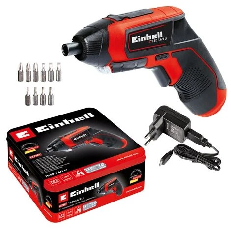 Il Cacciavite a batteria Einhell TE-SD 3,6/Li è un piccolo utensile con il quale potrete avvitare e svitare viti e bulloni su legno, metallo, truciolare, plastica e muratura in ambito hobbistico. Struttura piccola e compatta consente di tenerlo in tasca del giubbotto e dei pantaloni senza alcun intralcio; la batteria da 3,6 V 1,5 Ah assicura performances eccellenti in qualunque impiego; la tecnologia agli ioni di litio eliminano i problemi da autoscarica; la ricarica avviene tramite caricatore MICRO-USB. Il mandrino con attacco magnetico permette di cambiare i bits molto velocemente; la luce al LED migliora l’illuminazione della zona di lavoro.L’avvitatore TE-SD 3,6/1 Li viene fornito con 10 bits e una cofanetto in metallo pratico per tenere tutto a posto e a portata di mano.Caratteristiche generaliBatteria agli ioni di Litio3,6 V 1,5 AhDurata ricarica3-5 hGiri180 min-1 Momento di torsione max4,5 NmAttacco bit – magnetico6,35 mm 1/4″Accessorin. 10Dimensioni185 x 185 x 65 mmPeso netto 0,380 kg