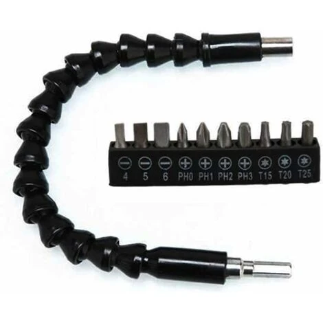 “ALBERO DI PROLUNGA FLESSIBILE: L’albero di prolunga a rotazione libera può piegarsi in qualsiasi direzione per entrare in punti difficili da raggiungere e stretti. L’estensione della punta del trapano a forma di serpente si estende fino a 300 mm / 12 pollici in modo da poter serrare e allentare le viti con grande facilità TESTA PER CACCIAVITE IN 10 MISURE: Il pacchetto viene fornito con 10 pezzi di punte per cacciavite per soddisfare le tue esigenze diversificate. Uno strumento ideale per la manutenzione e la riparazione dell’hardware, inclusi chassis di computer, armadi elettrici, mobili, elettrodomestici e altro ROBUSTO E DUREVOLE: Realizzato in materiale metallico di alta qualità con la massima durezza e resistenza alla corrosione, il set di punte da trapano con prolunga flessibile è resistente all’usura e durevole per un uso prolungato. Lo scudo flessibile protegge la tua mano mentre l’interno dell’asta ruota APPLICAZIONI AMPIE: Con un connettore a bussola esagonale da 1/4” e un gambo esagonale esterno da 1/4”, questo supporto per punte per cacciavite a prolunga flessibile si attacca rapidamente e facilmente alla maggior parte dei trapani elettrici. Perfetto per lavori idraulici, automobilistici e di riparazione domesticaColore: Peso nero: 133g”