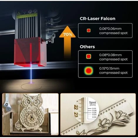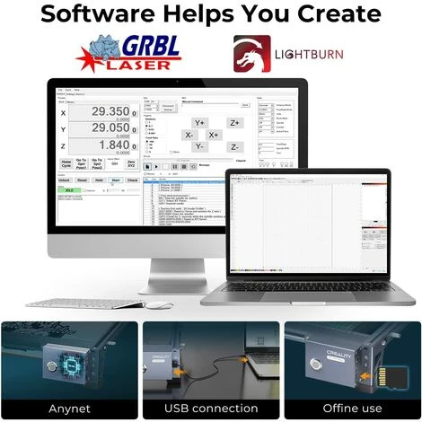 | Operazione con un solo pulsante Nello stato di lavoro offline, solo un pulsante per anteprima, avvio, pausa o interruzione della masterizzazione. IL L’indicatore LED integrato mostrerà chiaramente lo stato. | Masterizzazione offline Importa un file tramite una scheda TF. Usalo al chiuso, all’aperto o ovunque tu voglia senza connessione a un computer. | Kart mehr 32 Bit La scheda Mehr 32-Bit-Integration insieme all’Algorithmus per l’Entwicklung automatizzato, per il verbsserte Arbeitsleistung aufweist und con Logik von laserGRBL e LightBurn kompatibel ist. |