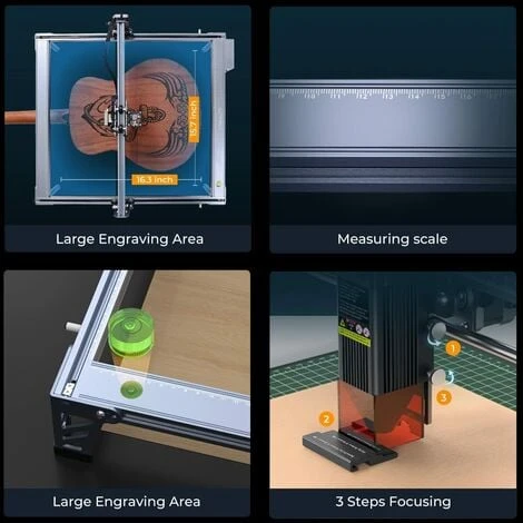 | Mise au point en 3 étapes Avec le noir de mise au point multi-misures, vous pouvez terminar rapidement la mise au point. Desserrez la vis de la tête laser, faites glisser la tête laser selon la sbarra de mise au point fixe et serrez la vis. | Casa di Protezione Laser La copertura di protezione automatica della testa laser impedisce al laser di schiarirsi i capelli. | Fonction d’arrêt actif Mit einem Gyroskop, der Funktionsmaschine mit Neigungswinkel, der Rückkehr oder der zufälligen Rutsche, dem Summer und der Anzeige, die unuffällig ist. |