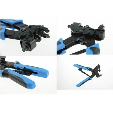 Lo strumento di compressione viene utilizzato con connettori a compressione per cavi coassiali per terminare cavi coassiali a doppia e quadrupla schermatura.