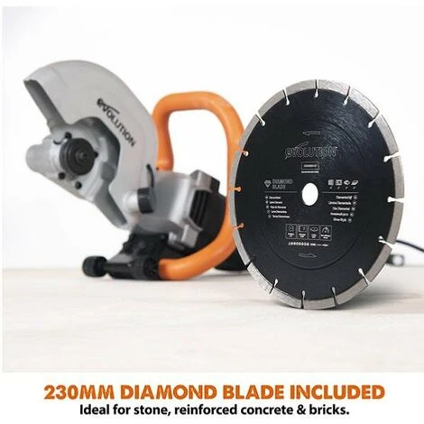 – Con lama diamantata in dotazione da 230 mm