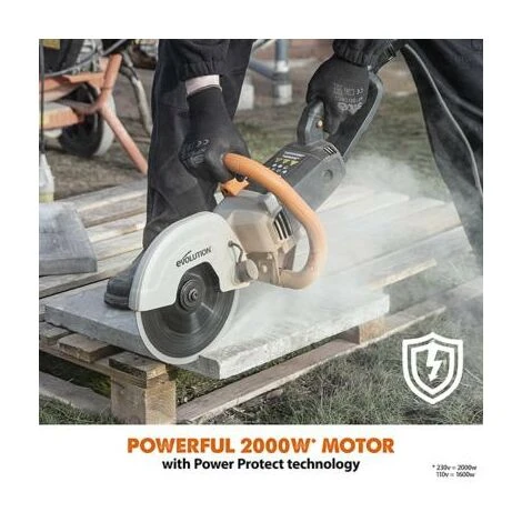 – Troncatrice elettrica con potente motore da 2000 W per tutti i tipi di muratura, compreso il taglio del cemento armato.
