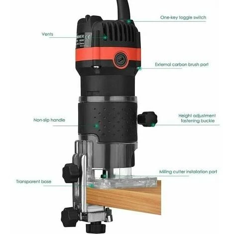 【Forte potenza】: motore in rame puro, prestazioni stabili, resistenza alle alte temperature, velocità fino a 30000 giri / min, dissipazione del calore rapida multi-calibro. 【Taglio multiplo】: 15 taglierine per la lavorazione del legno con scatola di immagazzinaggio in legno, taglio multiplo, una macchina, puoi completare perfettamente tutti i tipi di taglio, smerigliatura, intaglio. 【Design dettagliato】: base trasparente, chiara osservazione della traccia di trattamento, funzionamento di controllo preciso, interruttore a bilanciere a un pulsante, foro esterno per spazzola di carbone, mandrino di fissaggio in acciaio fine, impugnatura antiscivolo, tutto per te. 【Ampia applicazione】: viene utilizzato per la scanalatura del legno, la decorazione domestica fai-da-te, il taglio ad arco, l’intaglio artigianale e altre lavorazioni del legno. Questa macchina da taglio professionale sa esattamente quello che hai. 【Confezione】 1 macchina da taglio, 15 taglierine, 2 chiavi inglesi, 2 spazzole di carbone, 1 base trasparente, 1 deflettore,
