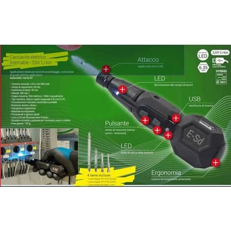 CACCIAVITE ELETTRICO INTERCABLE 3,6V LI-ION