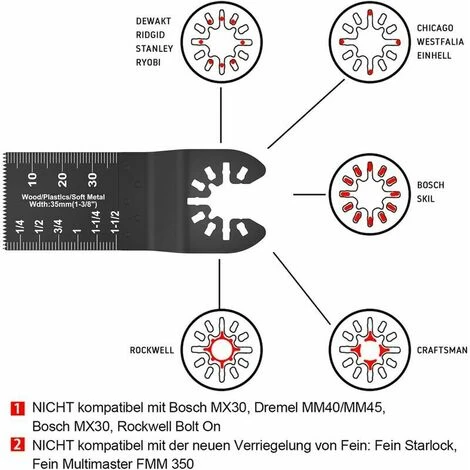 【Compatibilità】Con il sistema di interfaccia universale, è perfettamente compatibile con oltre il 95% degli utensili oscillanti sul mercato. La staffa universale è adatta per le seguenti marche: Fein Multimaster, Ryobi, Makita, Black Decker, Chicago, Craftsman, Dewalt, Bosch, ecc.