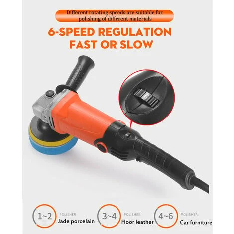 –1-7 regolazione della velocità, che può controllare la velocità della macchina. È adatto per la lucidatura, la ceratura e la satinatura di vari materiali. Giada e porcellana 1-3, pelle e pavimento 3-5, auto e mobili 4-7.