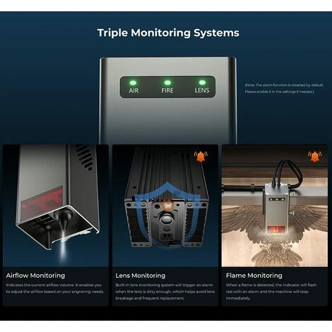 【Sicuro da usare】 Creality Falcon 2 aggiunge un design di protezione per bambini per impedire ai bambini di toccare accidentalmente l’operazione. Finecorsa a due vie: quando la macchina supera il limite, la macchina si fermerà automaticamente e suonerà un allarme. Quando la macchina è in funzione, la macchina ascolterà immediatamente quando si inclina, si ribalta o cade e suonerà immediatamente e contemporaneamente attiverà un allarme.