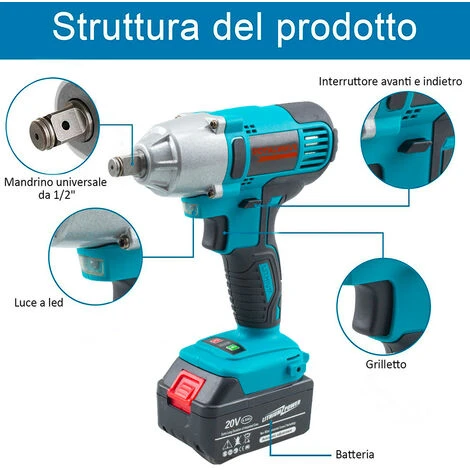 Grazie alla sua batteria a litio con potenza 20V, puoi svolgere lavori all’aperto in totale autonomia e libertà, senza spine o prolunghe. Ha una forza di serraggio di 268N.m. La sua impugnatura ergonomica e morbida consente un uso più confortevole e pratico. Questo trapano avvitatore è dotato di rotazione in senso orario e antiorario, variazione di velocità continua, e di una luce a LED che garantisce una migliore visibilità durante alcuni lavori. Inoltre, è a basso rumore, lunga durata e risparmio energetico.