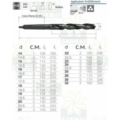 PUNTA TRAPANO PER ACCIAIO METALLO FERRO KRINO HSS RULLATA CODOLO CONICO MORSE – Misura Ø 14 Mm