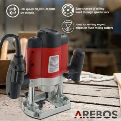 AREBOS Fresatrice Verticale Elettrica 1200W + Set 12 Frese Incl.