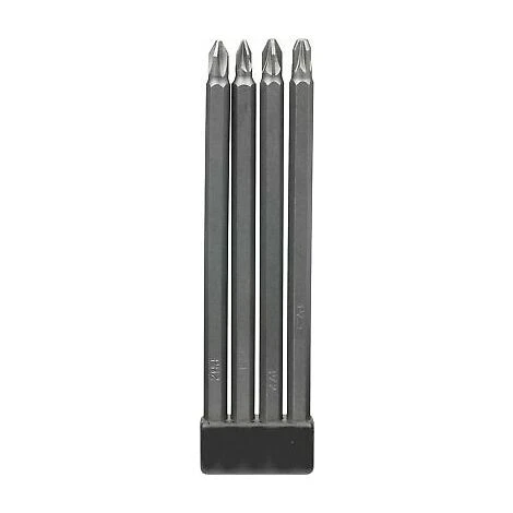 Set composto da 4 pezzi di Bits extra lunghi. Le punte extra lunghe sono ideali per avvitare viti in profondità.