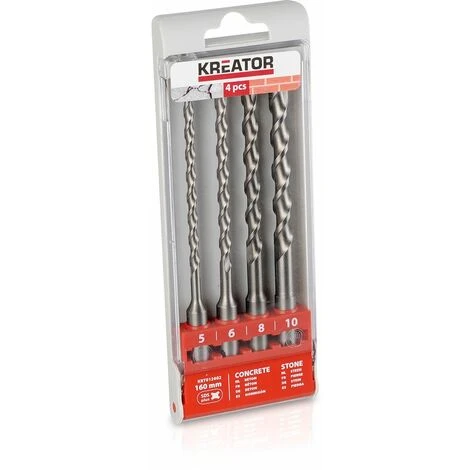 Set 4x Punte Trapano per Cemento e Pietra, Attacco SDS Plus | Kreator KRT012602