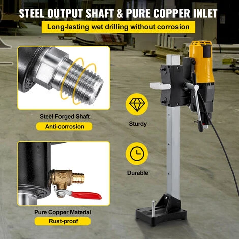 Per la perforazione a umido, ha un albero di uscita in acciaio forgiato e un ingresso dell’acqua in rame puro, che sono resistenti e antiruggine per una lunga durata.