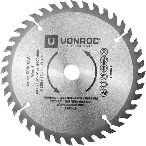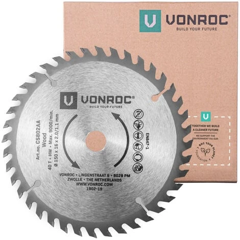 Non solo adatta alla sega circolare a batteria VONROC ma anche a seghe circolari da 150mm di altre marche. IMPORTANTE: la sega circolare deve essere compatibile, con un foro d’onda di 16 mm e uno spessore di 1,1 mm.