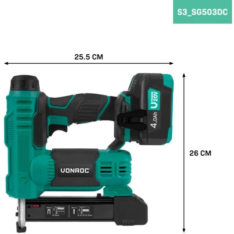 VONROC S3_SG503DC Pistola graffatrice chiodatrice 20V | Con batteria 4.0Ah e caricatore rapido